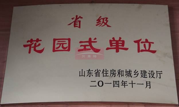 日前,中大貝萊特集團(tuán)被山東省住房和城鄉(xiāng)建設(shè)廳授予“省級(jí)花園式單位”榮譽(yù)稱號(hào),省級(jí)花園式單位是山東省綠化工作先進(jìn)單位的最高榮譽(yù)。